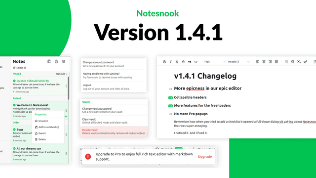 Remember how when you tried to add a checklist it opened a full blown dialog yik yak-ing about Notesnook Pro? Yep, that was super annoying.