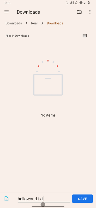 await ScopedStorage.writeFile(dir.uri, 'helloworld.txt', 'text/plain', text);Asking user to save a file